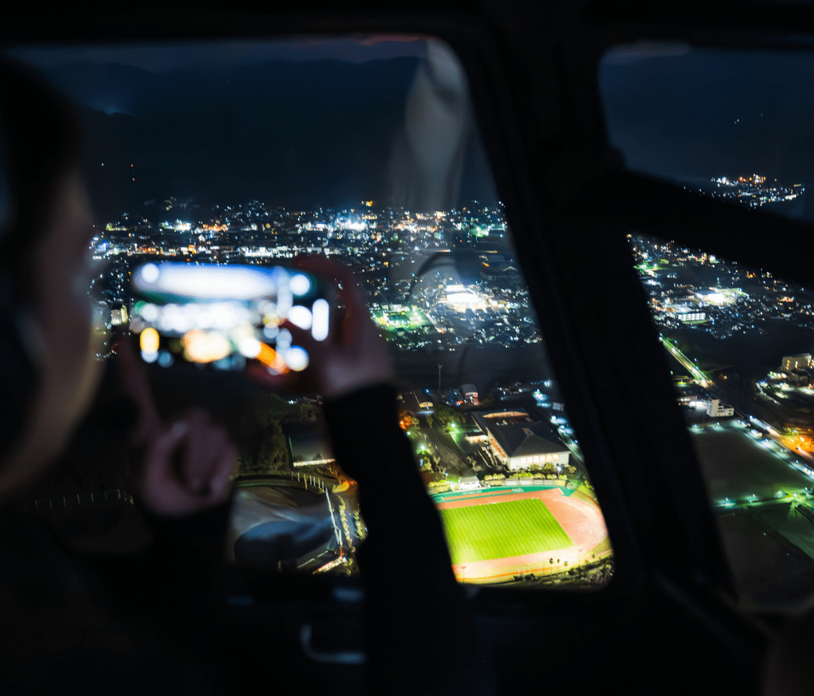Special Night Flight Plan, offers Helicopter Tour over night-time cityscapes of Miyazaki-City and other areas. Please contact us for tour course.