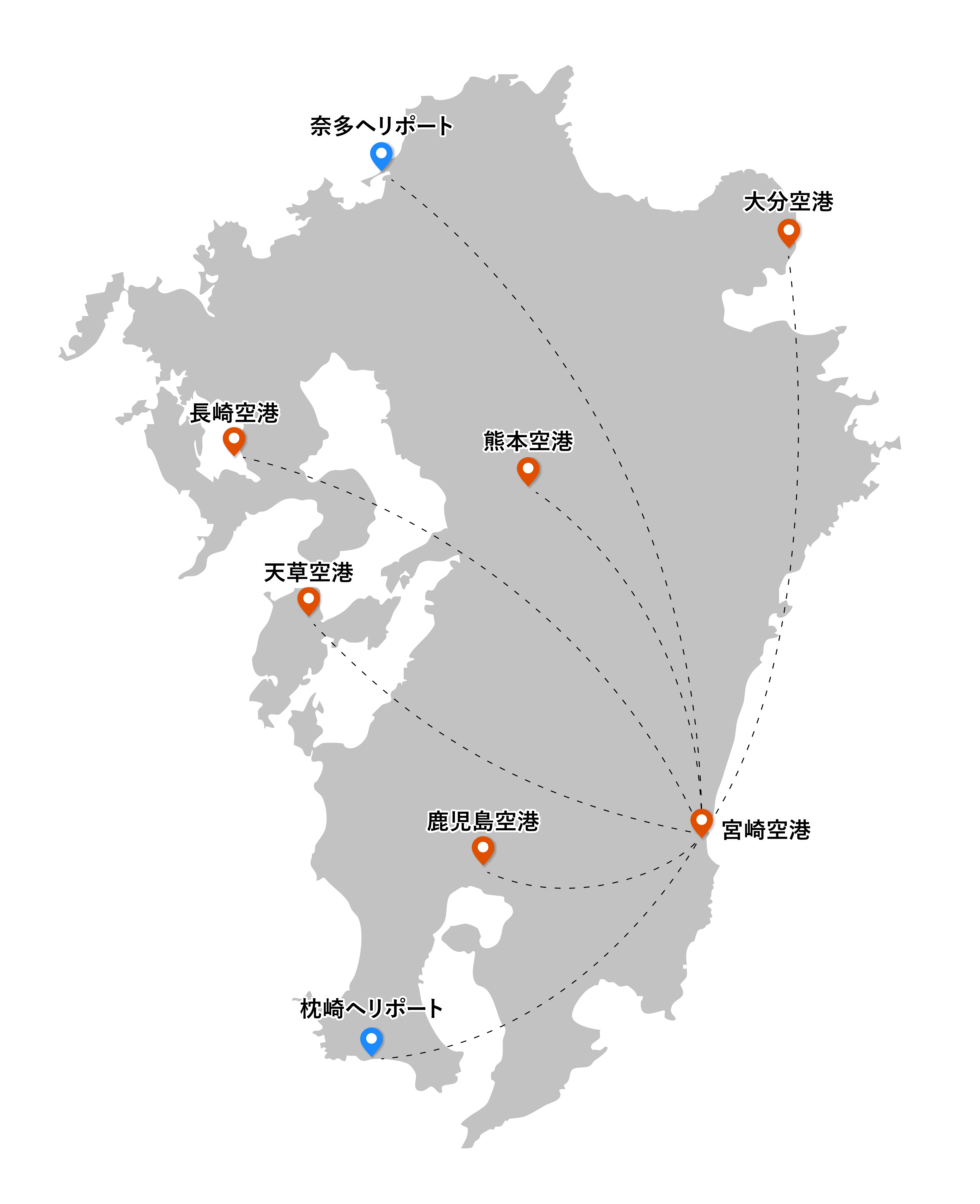 | 宮崎空港 | 枕崎ヘリポート(鹿児島方面) | 約50分 |